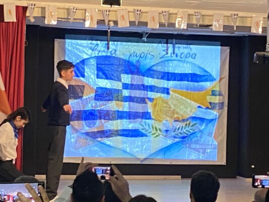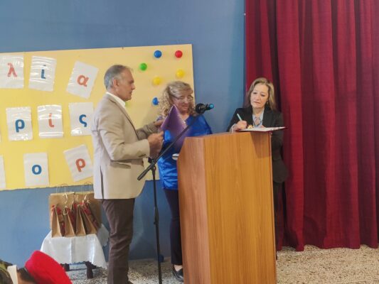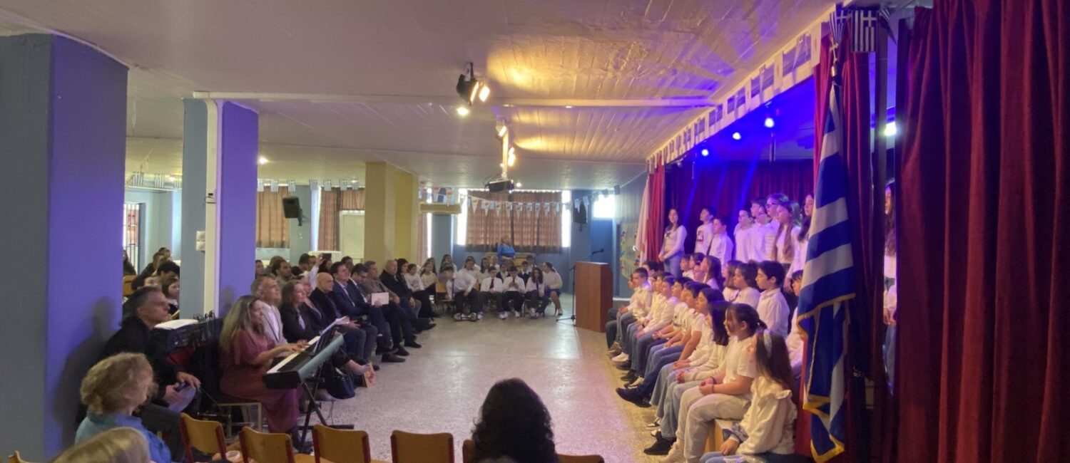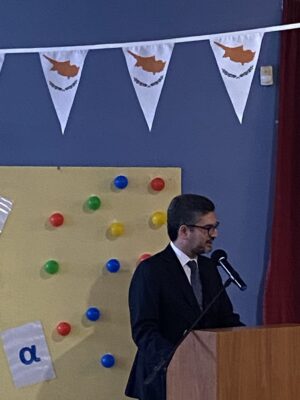 Κατά τον χαιρετισμό του ο Διευθυντής του σχολείου κ. Αϊβάζογλου ανέφερε, μεταξύ άλλων ότι «σε αυτή την ιστορική συγκυρία της 71ης επετείου από την έναρξη του αγώνα των κυπρίων αδελφών για αυτοδιάθεση μέχρι την τελική ανακήρυξη της ανεξαρτησίας τους, έχουμε την τιμή και τη χαρά να υποδεχόμαστε το αδελφό δημοτικό σχολείο του Καϊμακλίου της Κύπρου, εκπαιδευτικούς, γονείς και μαθητές/τριες, εγκαινιάζοντας μια σχέση που φιλοδοξούμε να έχει διάρκεια, ουσία και βαθύ νόημα. Η συνάντησή μας δεν είναι απλώς μια τυπική εκπαιδευτική συνεργασία. Αντλεί τη δύναμή της από τους διαχρονικούς ιστορικούς δεσμούς που ενώνουν τον ελληνικό και τον κυπριακό λαό – δεσμούς γλώσσας, πολιτισμού, παραδόσεων και κοινών αγώνων. Είναι δεσμοί που άντεξαν στο χρόνο και συνεχίζουν να εμπνέουν τις νεότερες γενιές να προχωρούν με γνώση, ευθύνη και σεβασμό σε αξίες και ιδανικά που η ιστορία μάς διδάσκει και κάνει οδηγό για τις επιλογές και τη στάση μας στη ζωή. Μέσα από την αδελφοποίηση των σχολείων μας βάζουμε τον σπόρο της φιλίας χωρίς σύνορα, της συναδέλφωσης και του αμοιβαίου σεβασμού, αξίες που συνέχουν τους λαούς. Οικοδομούμε γέφυρες επικοινωνίας και κατανόησης, τόσο απαραίτητες στον σύγχρονο κόσμο.