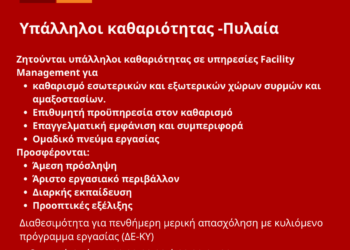 180326-Υπάλληλοι καθαριότητας -Πυλαία. Νέα Αγγελία Γραφείου Απασχόλησης.