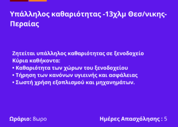 180326-Υπάλληλος καθαριότητας -13χλμ Θεσ/νικης-Περαίας. Νέα Αγγελία Γραφείου Απασχόλησης.