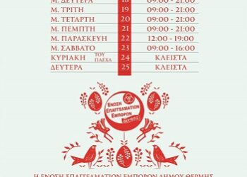 Την ερχόμενη Παρασκευή ξεκινά το Πασχαλινό ωράριο λειτουργίας των εμπορικών καταστημάτων στη Θέρμη