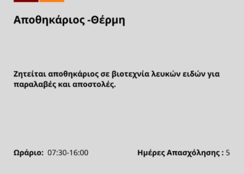 270126-Αποθηκάριος -Θέρμη. Νέα Αγγελία Γραφείου Απασχόλησης.