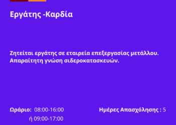 280126-Εργάτης -Καρδία. Νέα Αγγελία Γραφείου Απασχόλησης.
