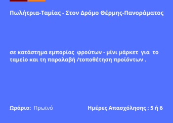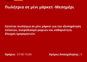 280126-Πωλήτρια σε μίνι μάρκετ -Μεσημέρι. Νέα Αγγελία Γραφείου Απασχόλησης.