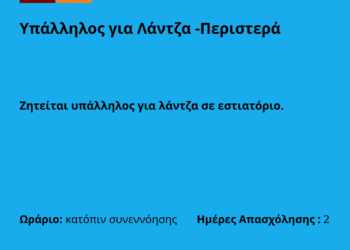 280126-Υπάλληλος για Λάντζα -Περιστερά. Νέα Αγγελία Γραφείου Απασχόλησης.
