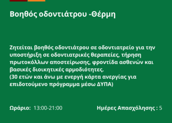 290126-Βοηθός οδοντιάτρου -Θέρμη. Νέα Αγγελία Γραφείου Απασχόλησης.