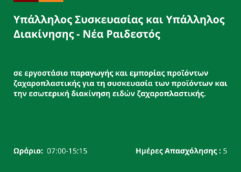 ... Περισσότερα 300126-Υπάλληλος Συσκευασίας και Υπάλληλος Διακίνησης-Νέα Ραιδεστός.Νέα Αγγελία Γραφείου Απασχόλησης