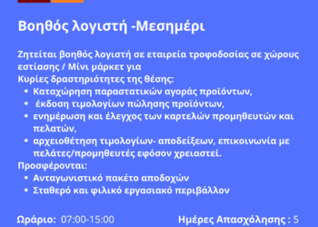 280126-Βοηθός λογιστή -Μεσημέρι. Νέα Αγγελία Γραφείου Απασχόλησης.