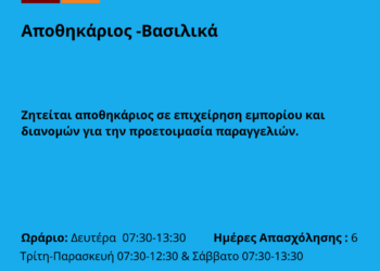 170226-Στέλεχος Εμπορικού Τμήματος -Βασιλικά. Νέα Αγγελία Γραφείου Απασχόλησης.