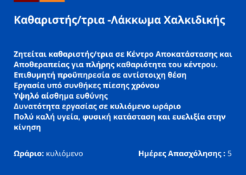 171025-Καθαριστής/τρια -Λάκκωμα Χαλκιδικής. Νέα Αγγελία Γραφείου Απασχόλησης.