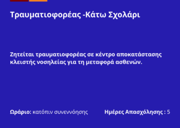 211025-Τραυματιοφορέας -Κάτω Σχολάρι. Νέα Αγγελία Γραφείου Απασχόλησης.