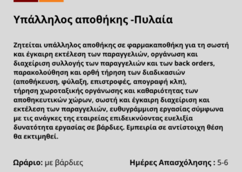 211025-Υπάλληλος αποθήκης -Πυλαία. Νέα Αγγελία Γραφείου Απασχόλησης.