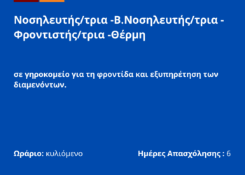 221025-Νοσηλευτής/τρια -Β.Νοσηλευτής/τρια – Φροντιστής/τρια -Θέρμη. Νέα Αγγελία Γραφείου Απασχόλησης.