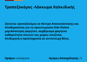 Τραπεζοκόμος -Λάκκωμα Χαλκιδικής. Νέα Αγγελία Γραφείου Απασχόλησης.