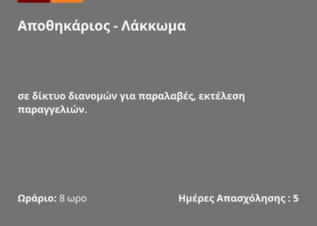 240625-Αποθηκάριος – Λάκκωμα. Νέα Αγγελία Γραφείου Απασχόλησης