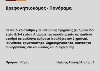 250625-Βρεφονηπιοκόμος – Πανόραμα. Νέα Αγγελία Γραφείου Απασχόλησης