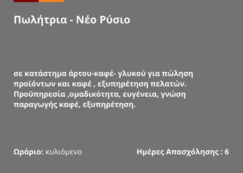 250625-Πωλήτρια – Νέο Ρύσιο. Νέα Αγγελία Γραφείου Απασχόλησης
