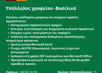 130126-Υπάλληλος γραφείου -Βασιλικά. Νέα Αγγελία Γραφείου Απασχόλησης.