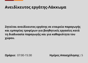... Περισσότερα 090326-Ανειδίκευτος εργάτης-Λάκκωμα. Νέα Αγγελία Γραφείου Απασχόλησης.