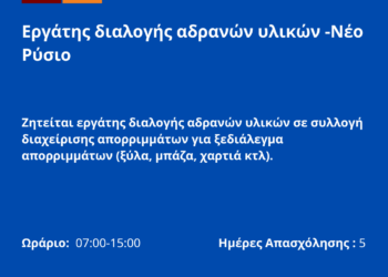 090326-Εργάτης διαλογής αδρανών υλικών -Νέο Ρύσιο. Νέα Αγγελία Γραφείου Απασχόλησης.
