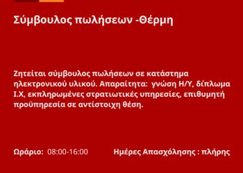 090326-Σύμβουλος πωλήσεων -Θέρμη. Νέα Αγγελία Γραφείου Απασχόλησης