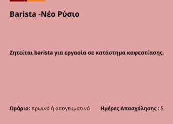 100326-Barista -Νέο Ρύσιο. Νέα Αγγελία Γραφείου Απασχόλησης.