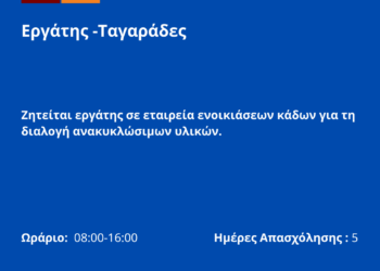 100326-Εργάτης -Ταγαράδες. Νέα Αγγελία Γραφείου Απασχόλησης.