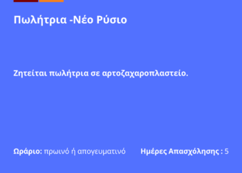100326-Πωλήτρια -Νέο Ρύσιο. Νέα Αγγελία Γραφείου Απασχόλησης.