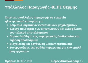 100326-Υπάλληλος Παραγωγής -ΒΙ.ΠΕ Θέρμης. Νέα Αγγελία Γραφείου Απασχόλησης.