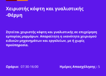 ... Περισσότερα 100326-Χειριστής κόφτη και γυαλιστικής -Θέρμη. Νέα Αγγελία Γραφείου Απασχόλησης.