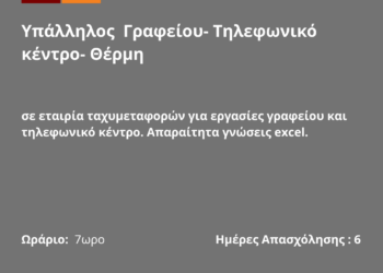 080426-Υπάλληλος Γραφείου- Τηλεφωνικό κέντρο- Θέρμη. Νέα Αγγελία Γραφείου Απασχόλησης