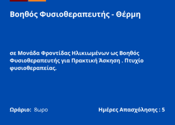 090426-Βοηθός Φυσιοθεραπευτής – Θέρμη. Νέα Αγγελία Γραφείου Απασχόλησης