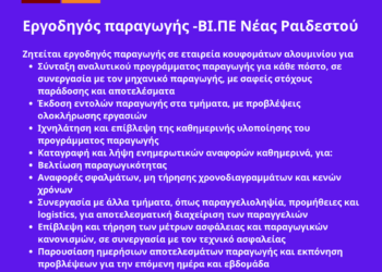 150426-Εργοδηγός παραγωγής -ΒΙ.ΠΕ Νέας Ραιδεστού. Νέα Αγγελία Γραφείου Απασχόλησης.