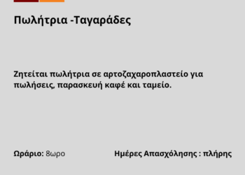 150426-Πωλήτρια -Ταγαράδες. Νέα Αγγελία Γραφείου Απασχόλησης.