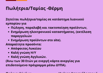 150426-Πωλήτρια/Ταμίας -Θέρμη. Νέα Αγγελία Γραφείου Απασχόλησης.