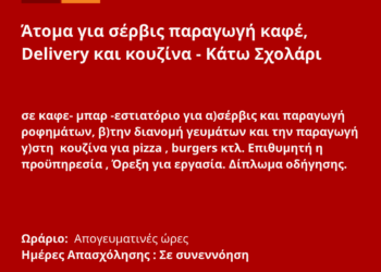 080426-Άτομα για σέρβις παραγωγή καφέ, Delivery και κουζίνα – Κάτω Σχολάρι . Νέα Αγγελία Γραφείου Απασχόλησης