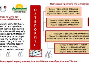 Δωρεάν έλεγχοι οστεοπόρωσης τον Δεκέμβριο από το ΚΕΠ Υγείας του δήμου Θέρμης