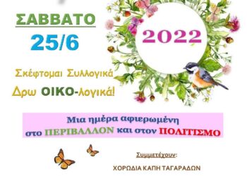 «Σκέφτομαι Συλλογικά, Δρω Οικολογικά», είναι το κεντρικό... Περισσότερα Τα Εαρινά 2022 το Σάββατο 25 Ιουνίου στους Ταγαράδες