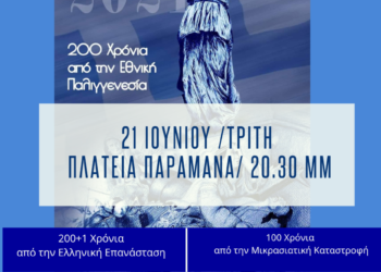 Με μια συναυλία αφιερωμένη στη μνήμη των ηρώων της... Περισσότερα Συναυλία στην πλατεία Παραμάνα για τα 201 χρόνια από την Ελληνική Επανάσταση με τη συμμετοχή έξι χορωδιών