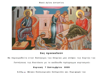 Θρησκευτικές και Πολιτιστικές εκδηλώσεις στον Άγιο Αντώνιο ενόψει της Εορτής της Γεννήσεως της Θεοτόκου