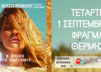 Ξεκινάμε, την Τετάρτη 1 Σεπτεμβρίου με τη Νατάσσα Μποφίλιου,... Περισσότερα ΘΕΡΜΗΣ ΔΡΩΜΕΝΑ 2021: Υποδέχονται το Σεπτέμβριο στο Φράγμα Θέρμης με τρεις μοναδικές συναυλίες