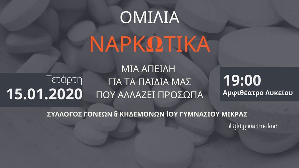 Σήμερα η ομιλία για τα Ναρκωτικά που διοργανώνει ο Σύλλογος Γονέων & Κηδεμόνων του 1ου Γυμνασίου Τριλόφου