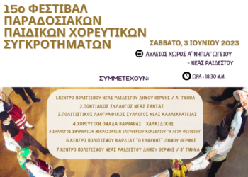 To 15ο Φεστιβάλ παιδικών παραδοσιακών χορευτικών συγκροτημάτων το Σάββατο 3 Ιουνίου στη Νέα Ραιδεστό