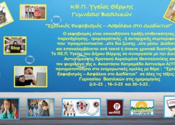 Κύκλο ενημερωτικών ομιλιών με θέμα “Σχολικός Εκφοβισμός –... Περισσότερα Ομιλίες για τον σχολικό εκφοβισμό και την ασφάλεια στο διαδίκτυο, στο Γυμνάσιο Βασιλικών