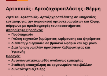 ... Περισσότερα 020426-Αρτοποιός – Αρτοζαχαροπλάστης -Θέρμη. Νέα Αγγελία Γραφείου Απασχόλησης.