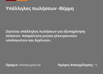 020426-Υπάλληλος πωλήσεων -Θέρμη. Νέα Αγγελία Γραφείου Απασχόλησης.