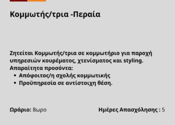 030426-Κομμωτής/τρια -Περαία. Νέα Αγγελία Γραφείου Απασχόλησης.