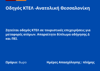 ... Περισσότερα 030426-Οδηγός ΚΤΕΛ -Ανατολική Θεσσαλονίκη. Νέα Αγγελία Γραφείου Απασχόλησης.