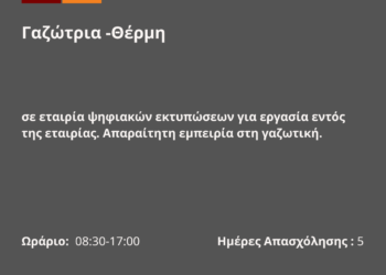 280426-Γαζώτρια -Θέρμη. Νέα Αγγελία Γραφείου Απασχόλησης