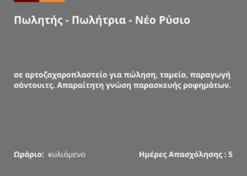 280426-Πωλητής – Πωλήτρια – Νέο Ρύσιο. Νέα Αγγελία Γραφείου Απασχόλησης