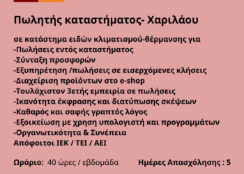 280426-Πωλητής καταστήματος- Χαριλάου. Νέα Αγγελία Γραφείου Απασχόλησης